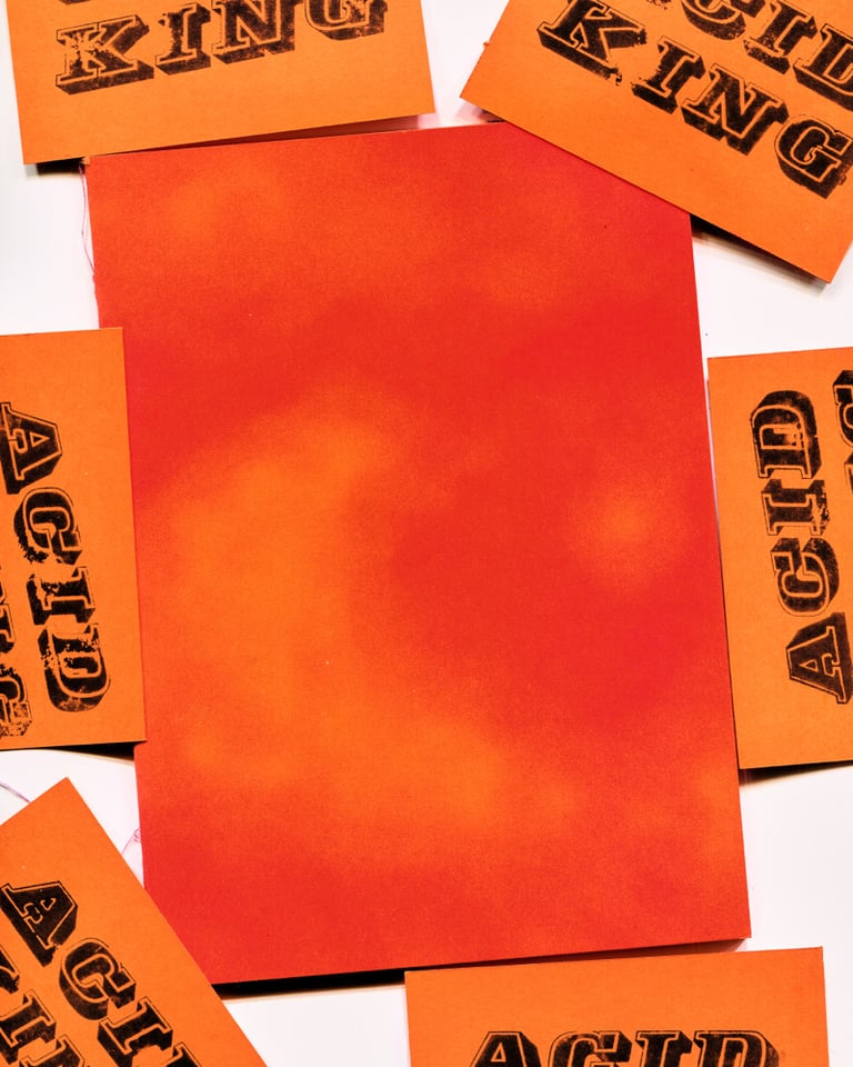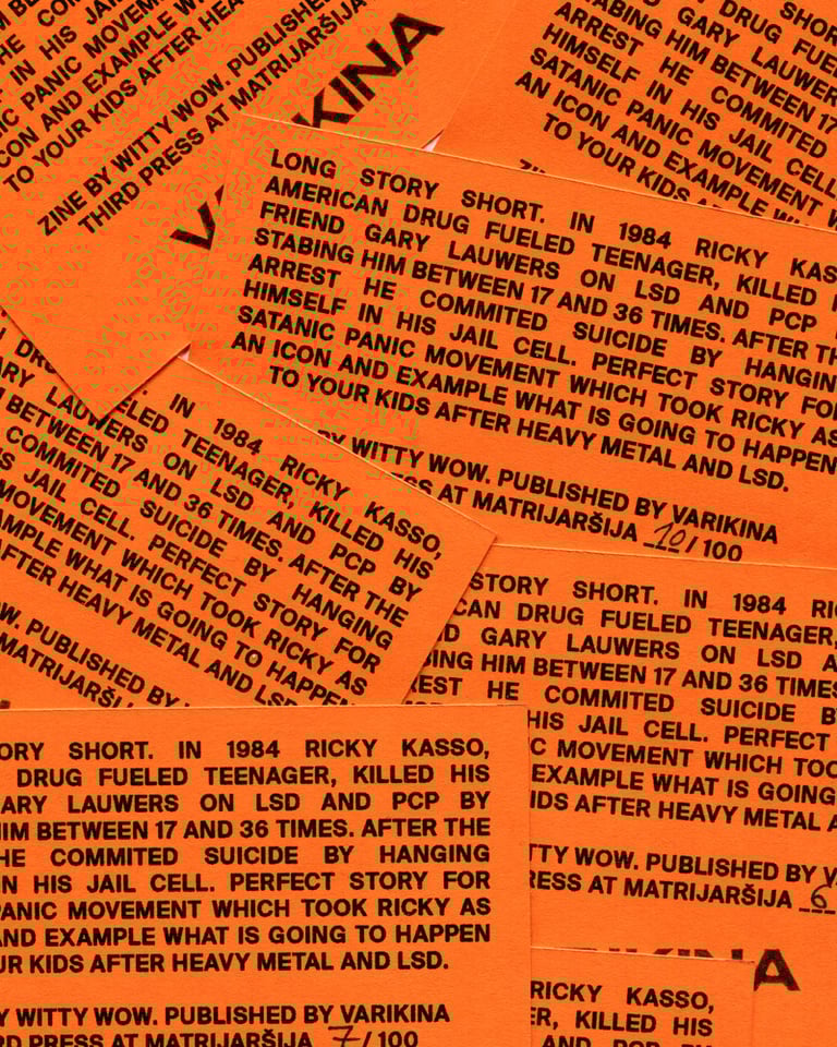 RISO PRINTED ON 230GSM ORANGE PAPER, WITH STAMP ON CARDS AT MATRIJARSIJA